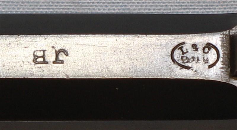 In the same way the mark L & C in an oval lying were already noticed I believe on others weapons of Liège but to date could not still be identified with certainty. One could think that it is about the mark of LAPORT H & Co (Proof house of Liège 1876/1896) which with commercial contacts with South America. LAPORT would be then the manufacturer of the weapon and ENGLEBERT that of the barrel (not confirmed assumption!)