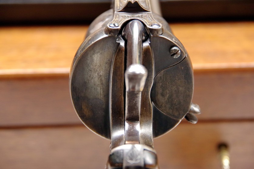 This rather unusual revolver, manufactured in Belgium in
