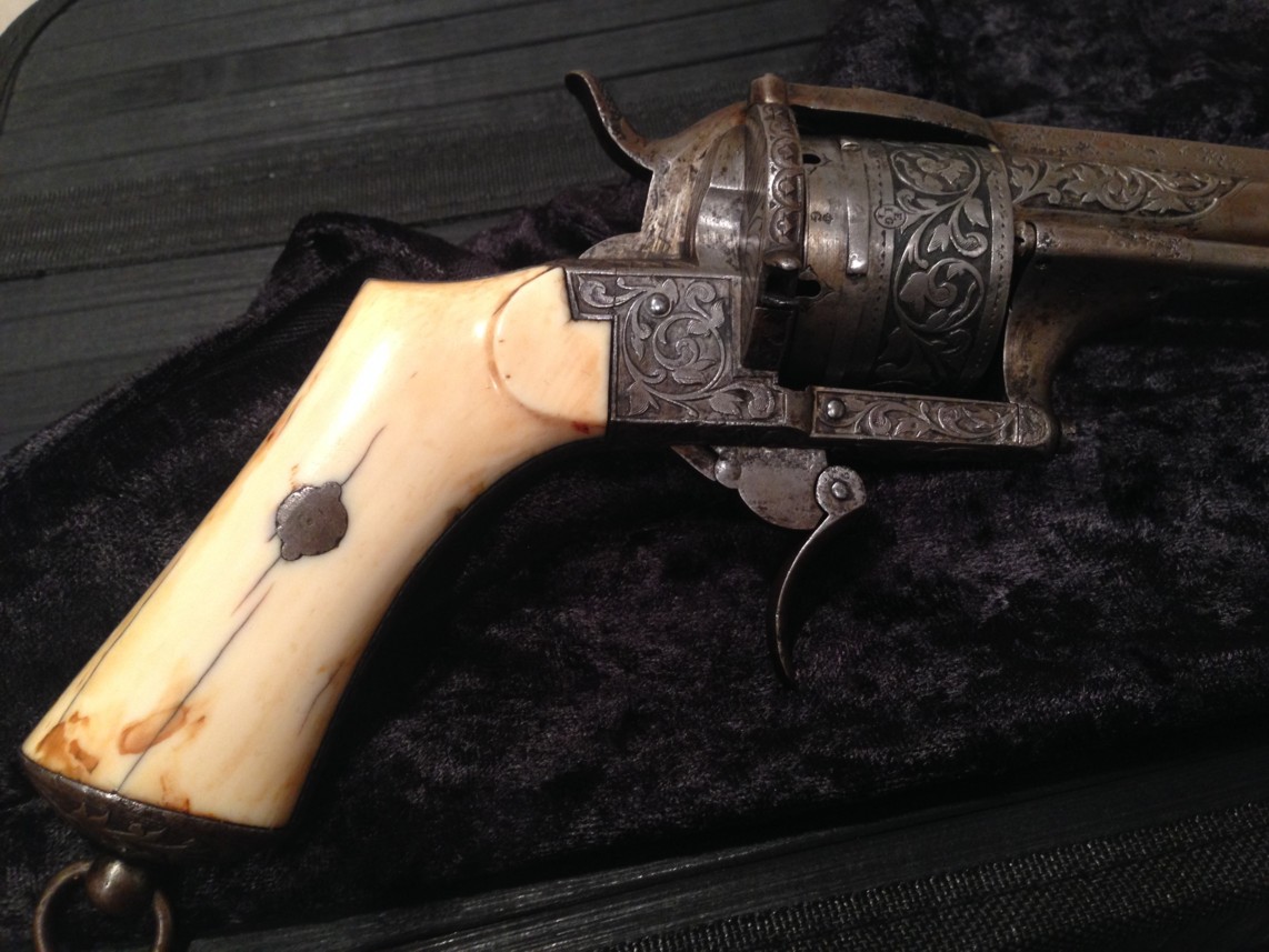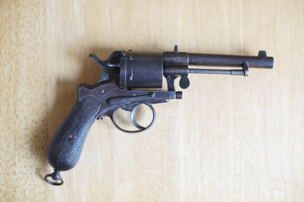 The Bull Dog revolver in question has the usual characteristics of Liège