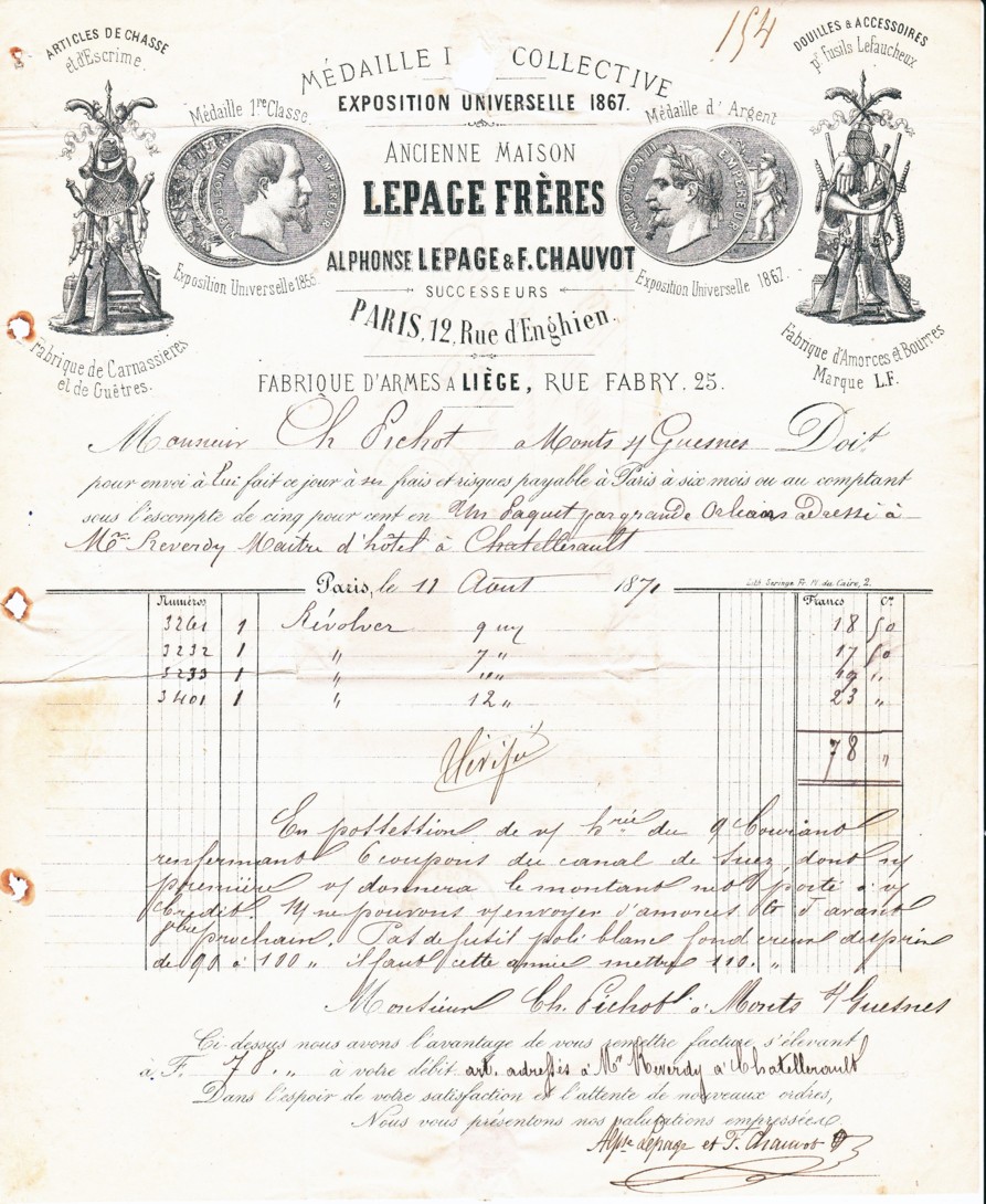 Then came the arms manufacturers whose warehouse was located at 12 rue d'Enghien in Paris in 1856.