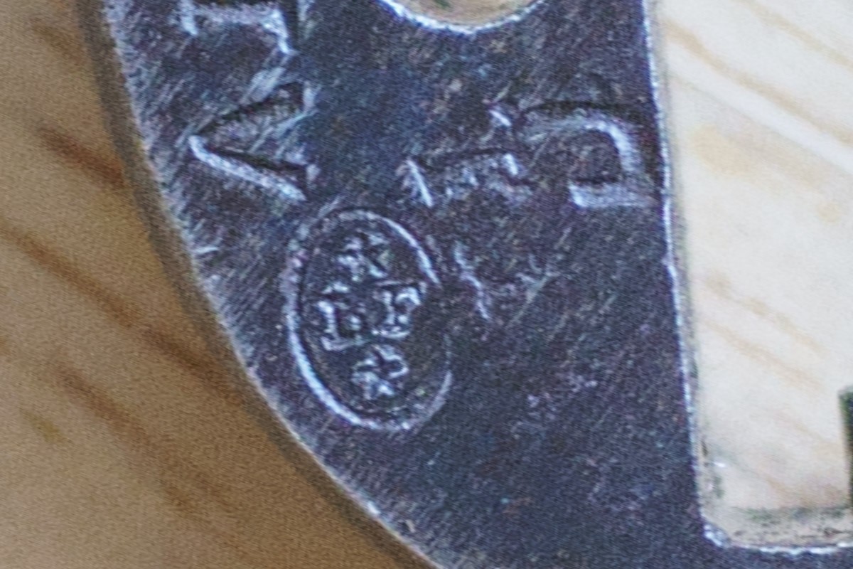 Frame under plate: Numeral 5 and indecipherable signs