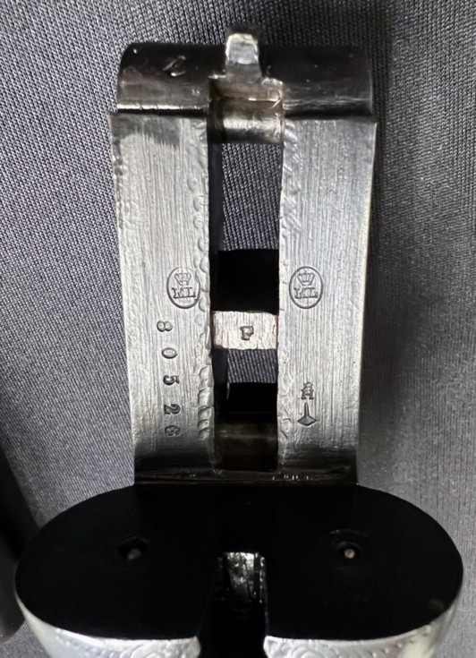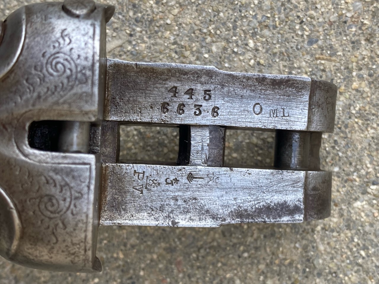 The weapon carries the punches of the proof house of Liège which one can interpret as follows: