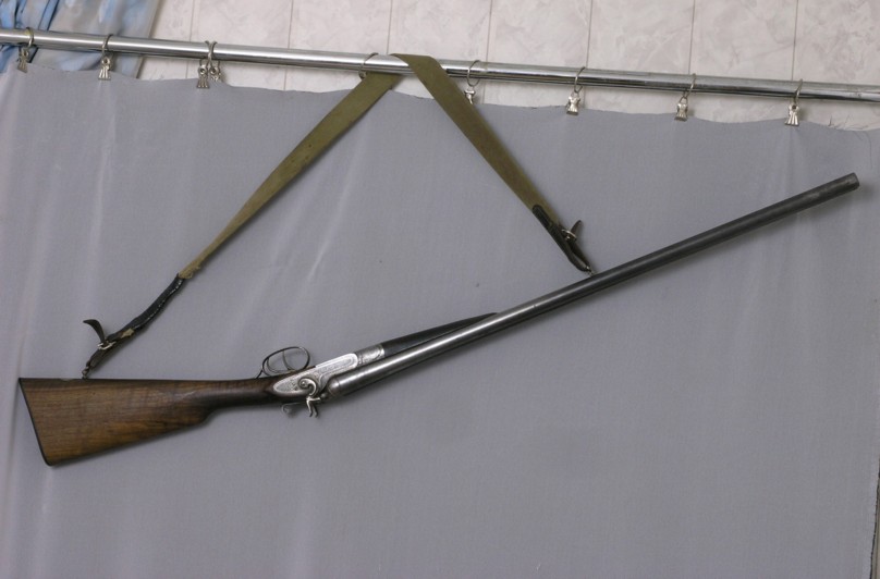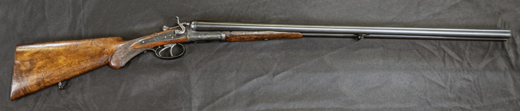 It is about a shotgun to central percussion, juxtaposed unrifled bores, rocks with key top between the external hammers, barrels in English Damas, squared stick gun.