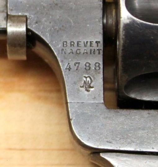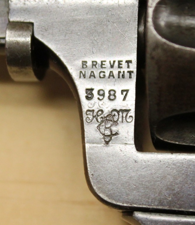 PATENT NAGANT 325: this mark refers to the patent n°42907 of the 25.08.1877. The identification of the origin of revolvers NAGANT is carried out by the marking affixed on the left of the console. All the weapons made in Belgium by manufacture NAGANT carry the inscription “PATENT NAGANT” on two lines, followed serial number.