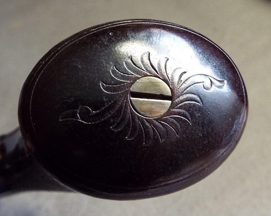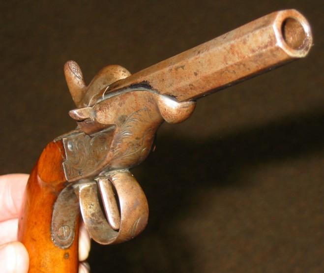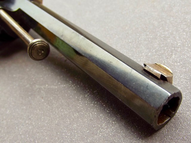 barrel, probably 9 or 12 mm; the barrel seems to me to have been bronzed. Handle