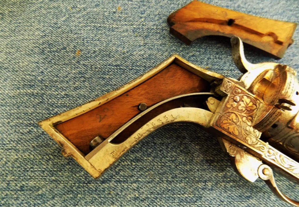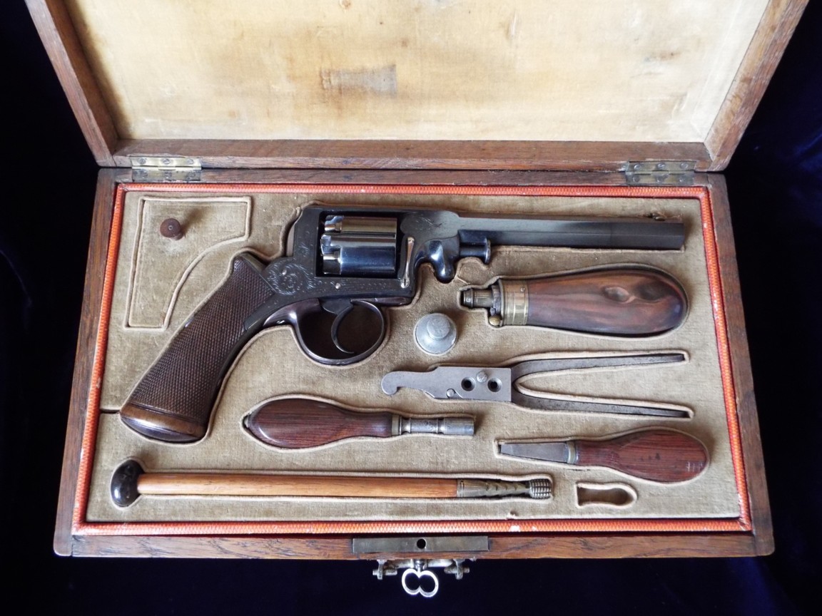 Gustave Henri Delvigne (ex-officer of the French Army), prolific inventor, meets in 1861 J Chamelot (arms manufacturer at Fusnot in Brussels - is it Belgian?), they create the revolvers baptized "left-handed" (door of loading on the left) for cartridges with pin.
