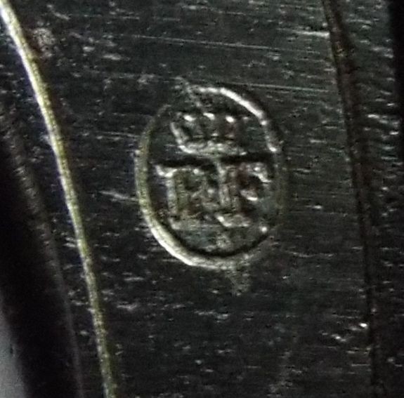 signature or the crowned oval punch (the crown is centered above the two