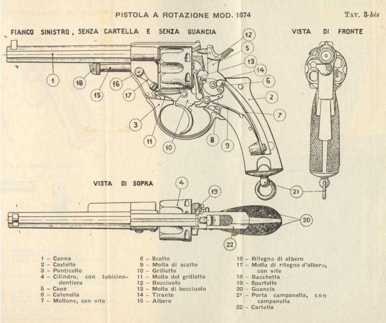 Low on the page, Glisenti of the years 1874- 1880: it is the Model of ordinance manufactured under licence Chamelot Delvigne for the Royal cavalry, the alternative (very rare) with short gun, by Pirlot Frères, Liége.