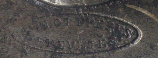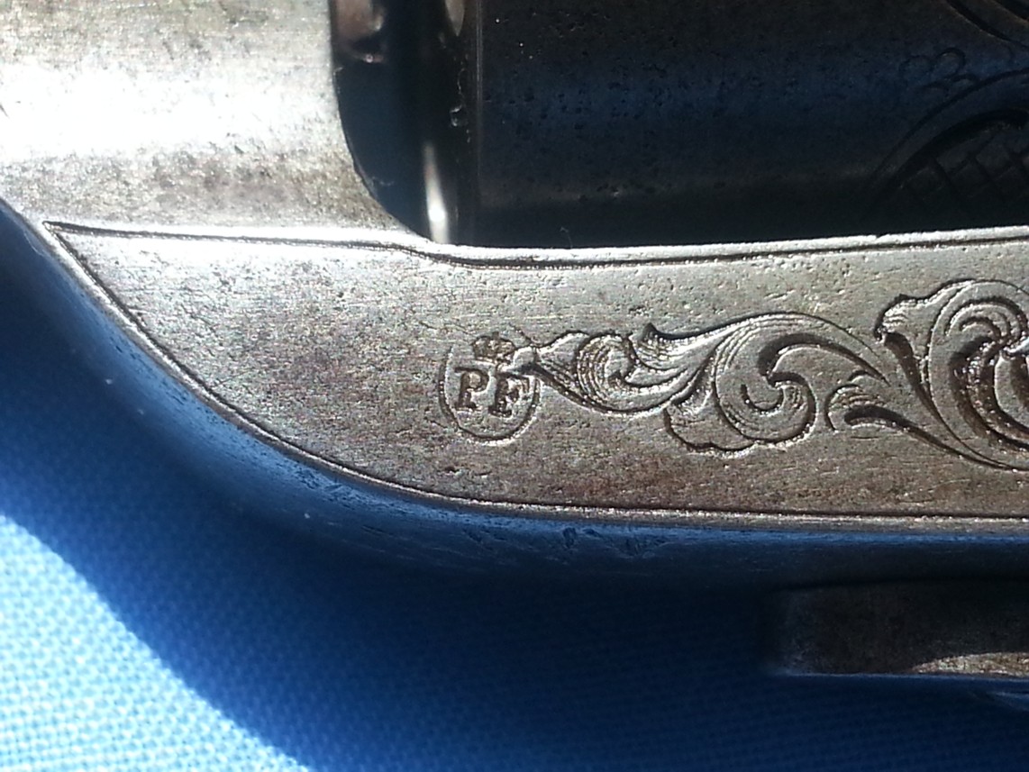 Mark PF in a crowned oval is that of PIRLOT Frères (see below) registered with the poof house of Liège of 1836 to 1879.The firm becomes PIRLOT and FRESART in 1879.