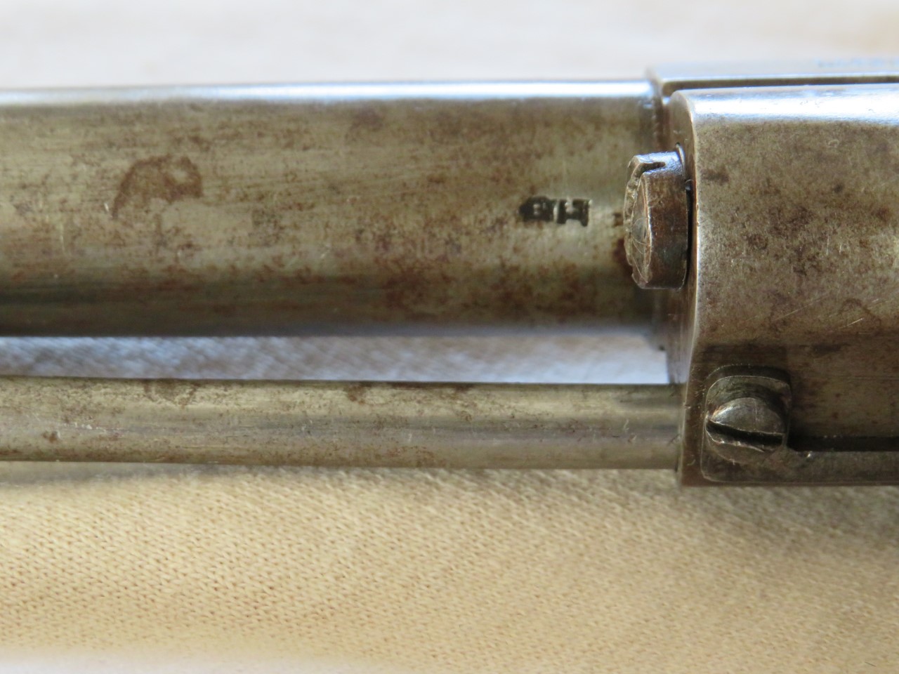 EB couronné (si bien lu ?) il pourrait s’agir de la marque du fabricant de canons de fusils Ernest Bertrand.