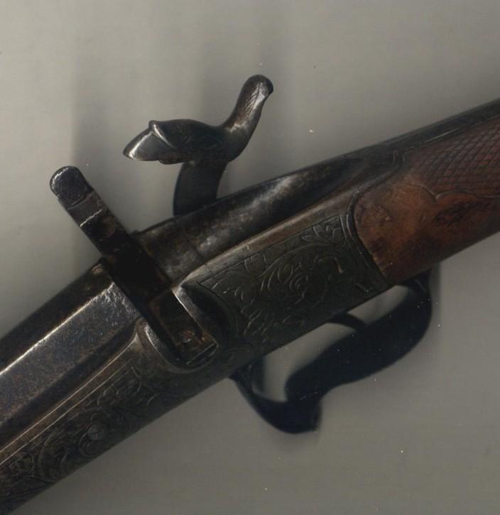 Cette modification pourrait avoir été faite par un armurier du canton de Zürich et je pense pour la chasse, car la hausse a été supprimée. Ce qui n’est jamais le cas sur les armes modèles 1817/1842 militaires.