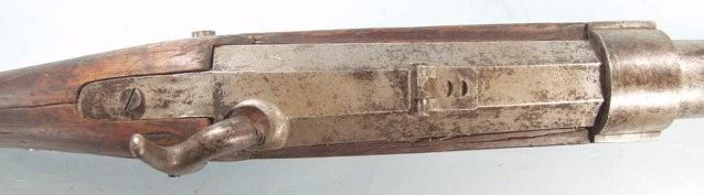 POSSIBLE CONFEDERATE PURCHASE, CIRCA 1860. 35 lbs. In weight and with 32" octagonal round barrel with 1 5/8" bore. Lock signed "Pirlot Freres a Liege". Iron mounted and stock appears to be of oak. Well weathered. Shows signs of having seen long service at sea.