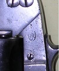 Spangled J.B.R. in a vertical oval: Revolver LEVAUX was manufactured by several firms of Liège of which in particular LEPAGE, ANCION-MARX and also Jean-baptiste RONGé as us this trademark proves it. This firm was located in LIEGE places Saint Jean, n° 4 (see the site).
