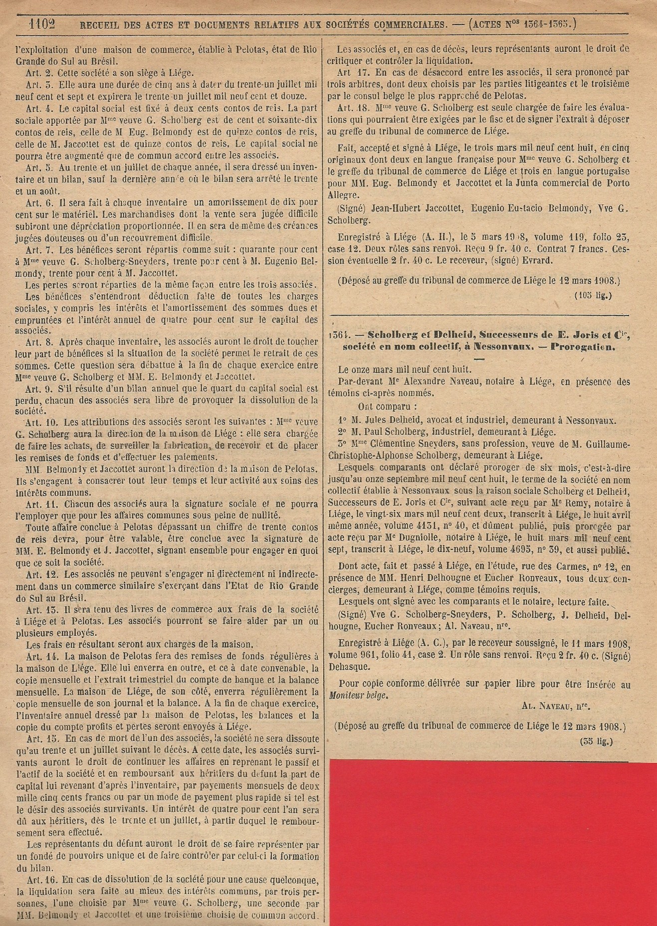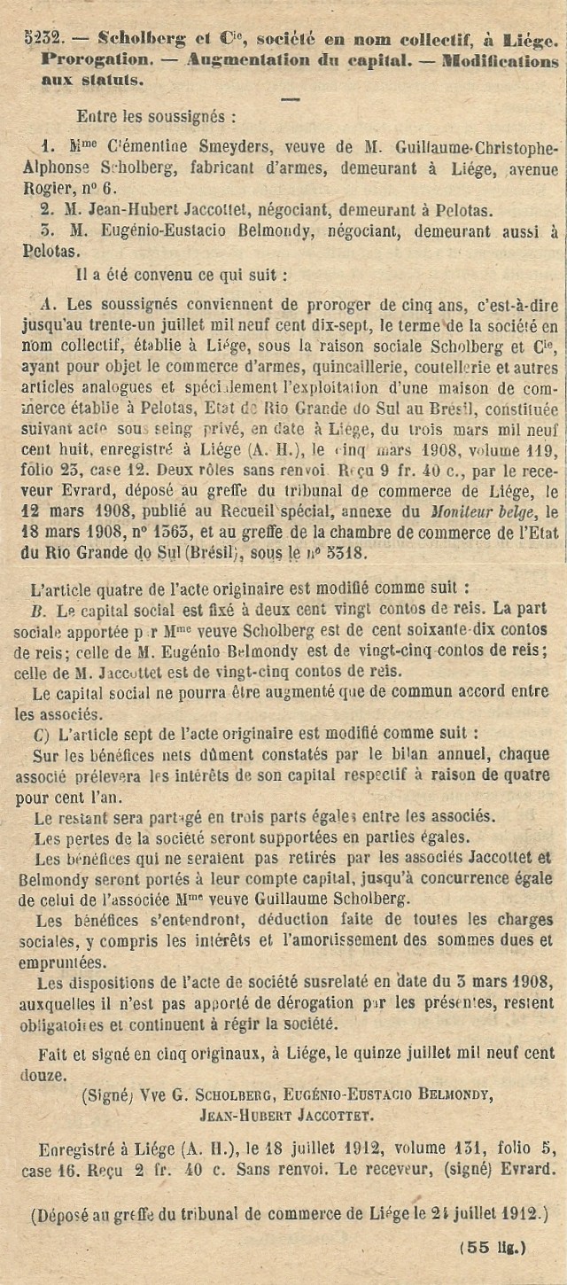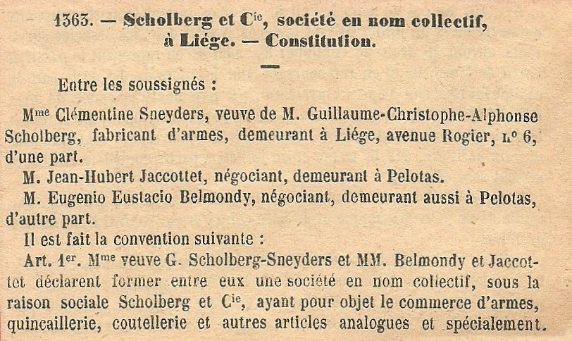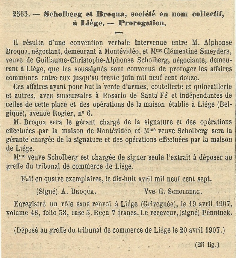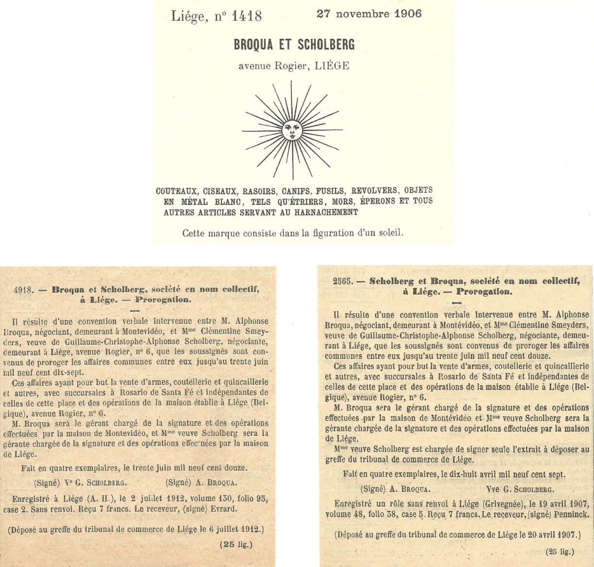 Brazil, and the Scholberg Company was located at Roger Aveniéres No. 6, Liege,