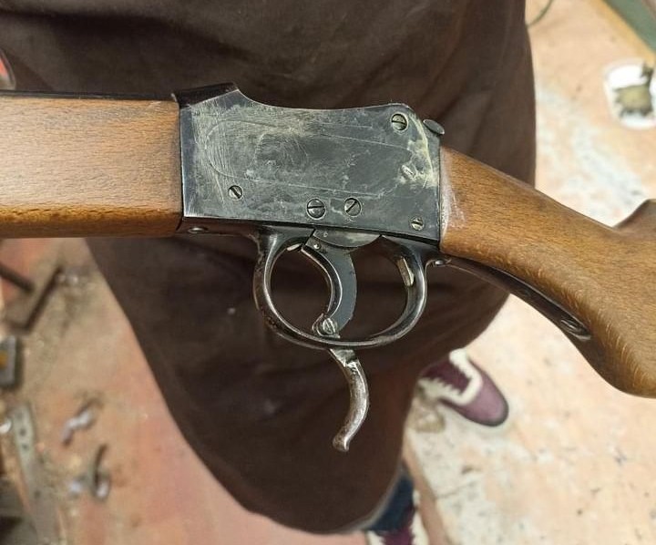 In conclusion, and in the absence of additional information (markings?), this rifle appears to be the work of craftsman Julien Warnant-Créon. It uses a Martini-Henry system in 22 Long Flobert repeating caliber.