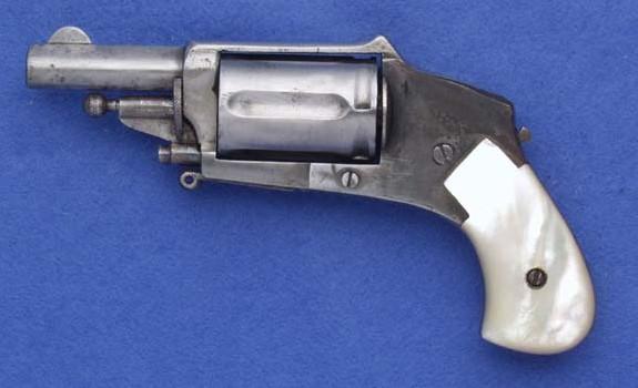 Hammerless Vélo-dog in 6 mm, grip out of mother-of-pearl, visible mark PV surmounted by a lion (test with the powder without smoke of the 04.10.1898 to the 26.02.1968). Mark VELO-DOG was deposited the 20.04.1904 by René GALAND Rue Vivegnis, 296 in LIEGE.