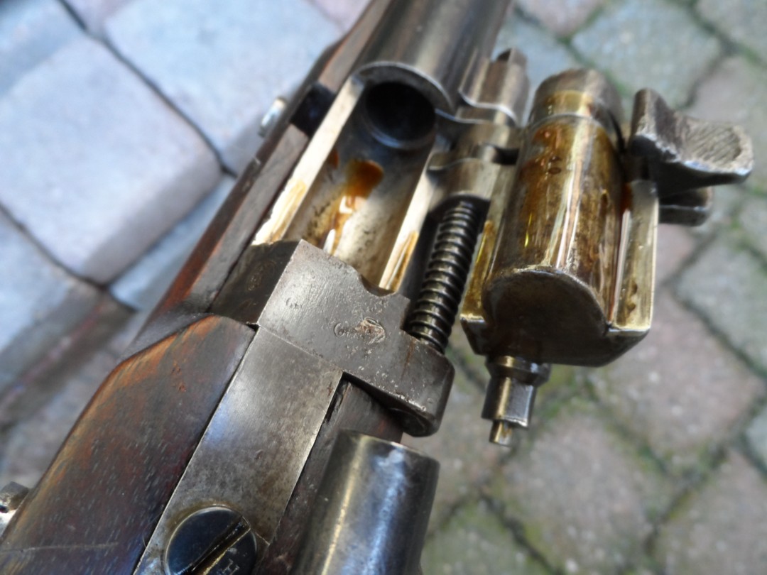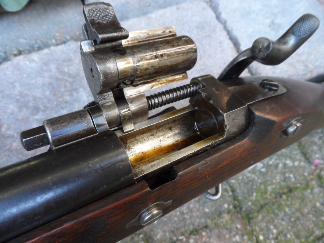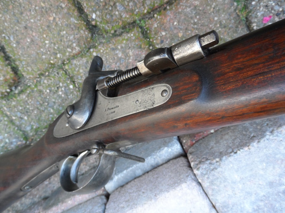breech-block is apparent (as on snuffbox 1867 French rifle of Schneider,