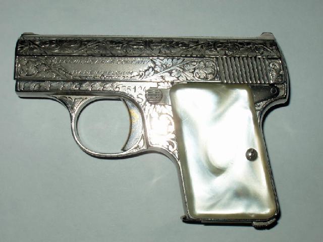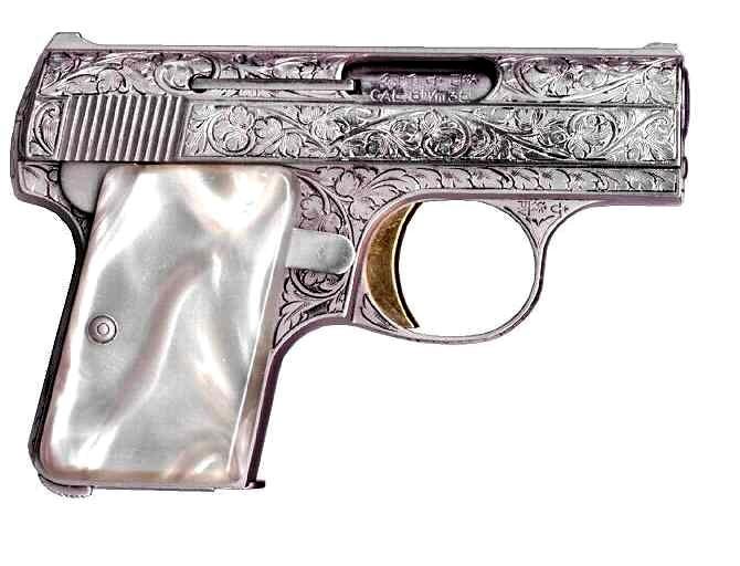 John Moses Browning designed some enhancements on his vestpocket-pistol, but was not able to realize them. He died in 1926 and his plans remained in the shelf.