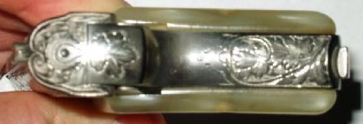 This one is engraved “Renaissance”, mother-of-pearl platelets and gold plated!