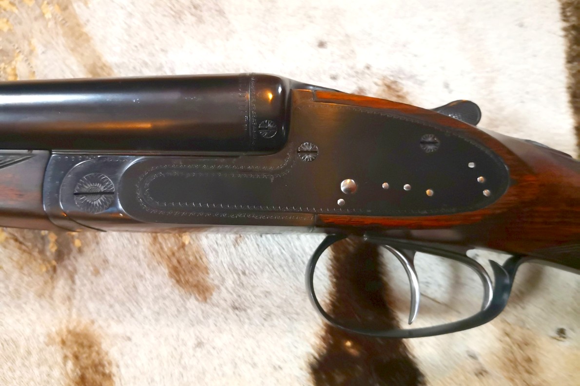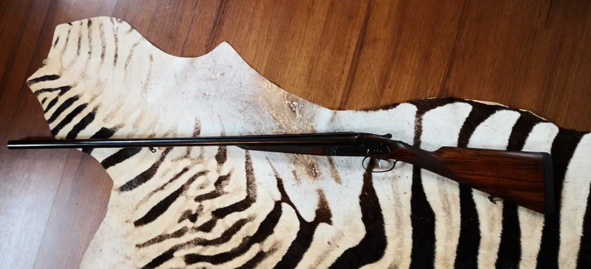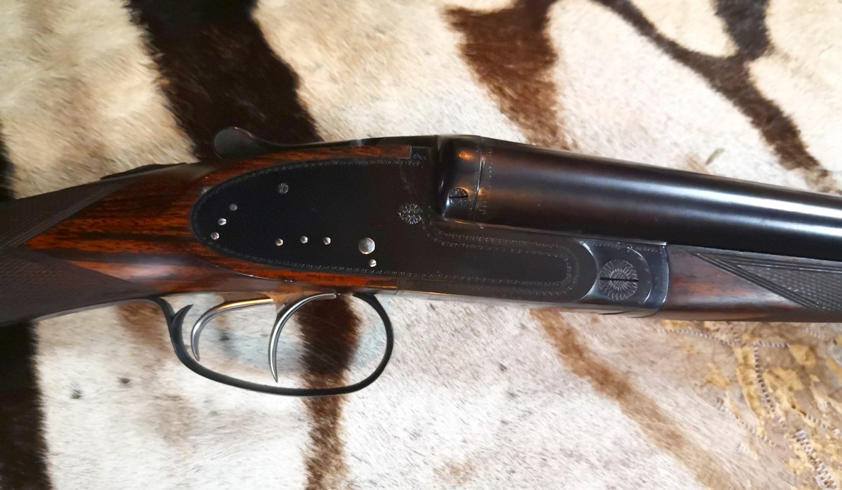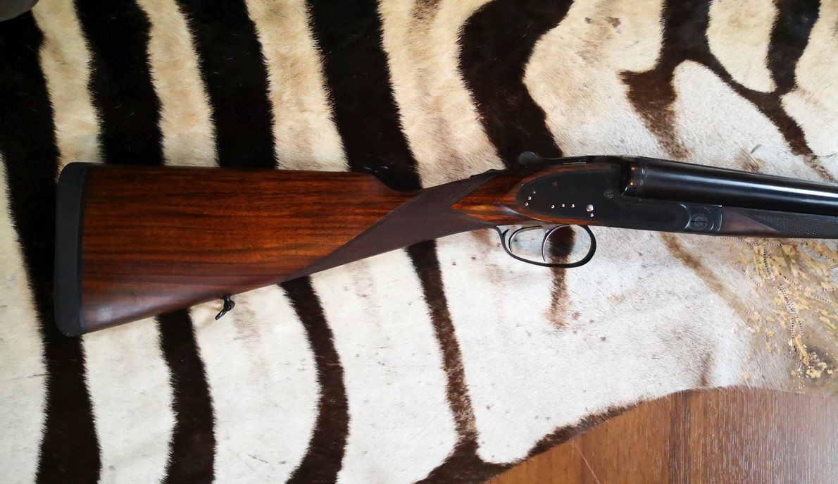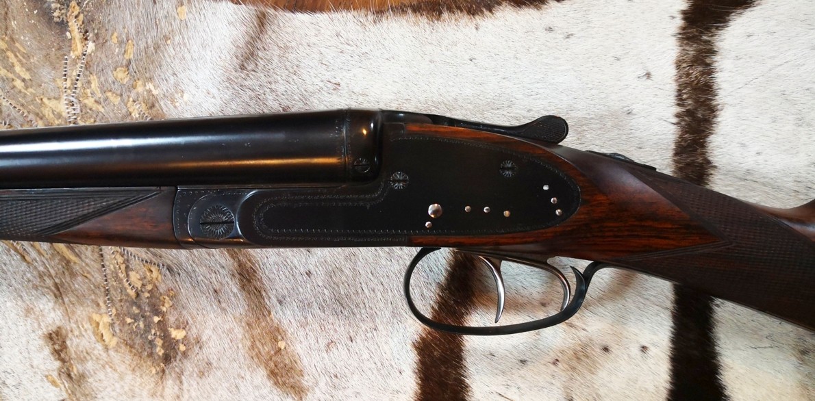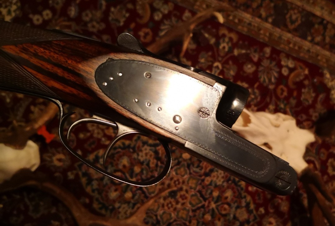 "hammerless" shotgun with two side-by-side barrels, very classic with its double