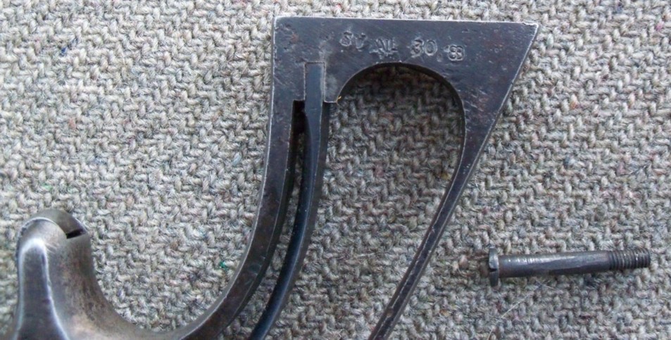 AS, nombre 30 (numéro de série ?) et autres marquages indéchiffrables sous plaquette droite.