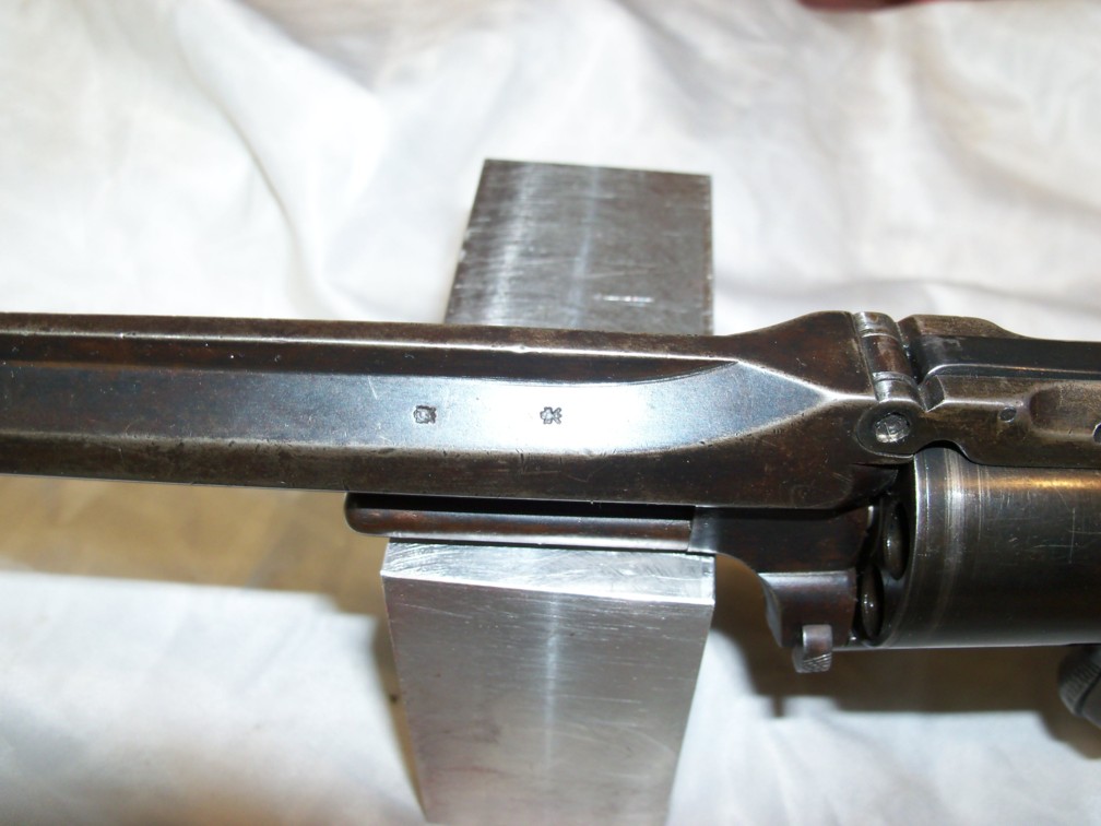 L’exemplaire examiné ici est évidemment destiné au marché britannique, avec ses poinçons d’épreuve de Birmingham. Cependant rien n’indique de façon certaine qu’il fut produit en Angleterre. Par exemple, un certain Meyers (belge, anglais ?) est réputé pour ses copies de ce modèle S&W N°2.