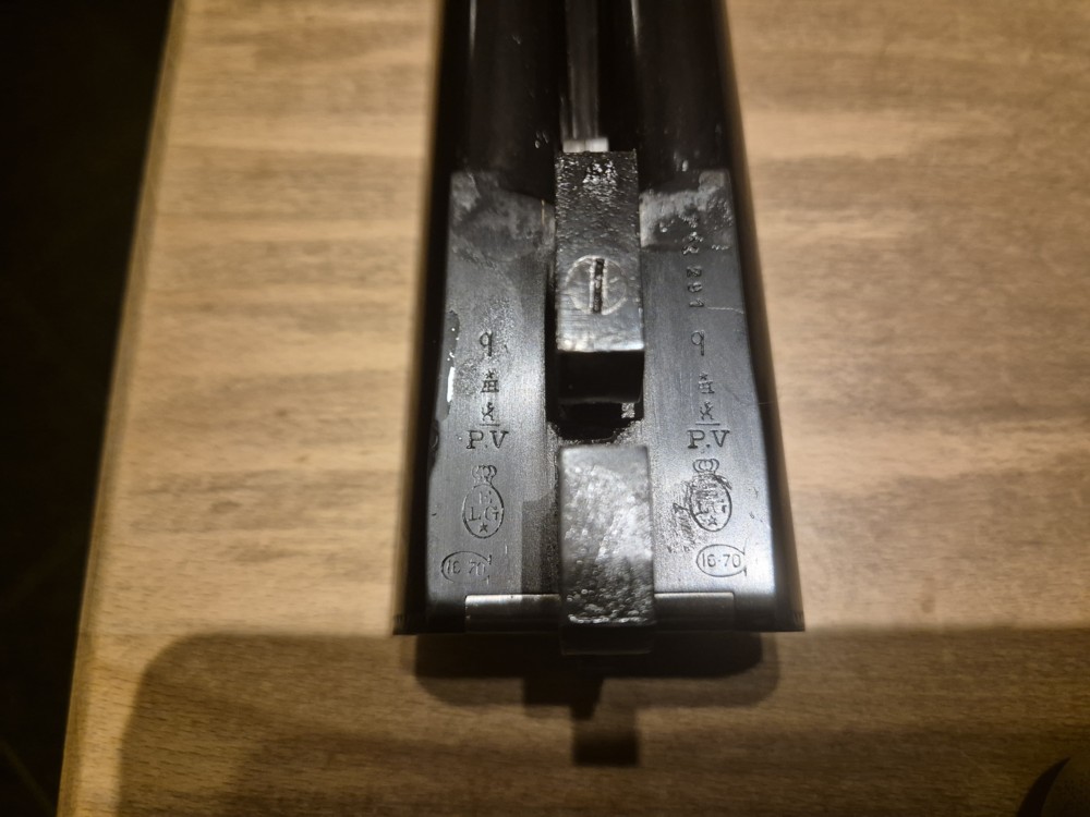 L’arme porte les poinçons réglementaires du banc d’épreuves de Liège, soit :