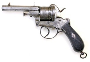 Les similitudes militent effectivement pour cette conversion. Le revolver à broche représenté à gauche est identifié comme un « Modèle 1863 ».