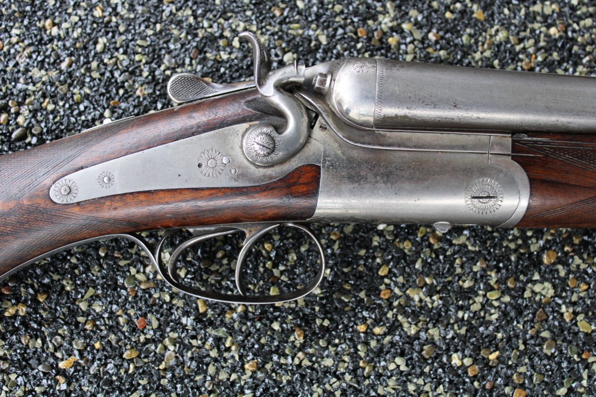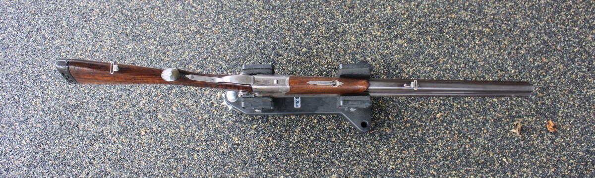 dealing with a beautiful shotgun of the "Drilling" type, equipped with external