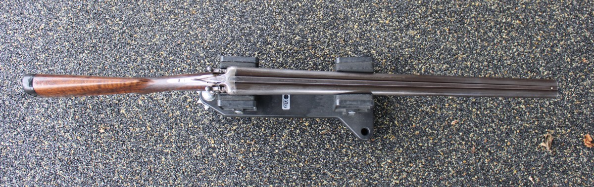 Two hammers and two triggers are shown for the upper left and right barrels, but