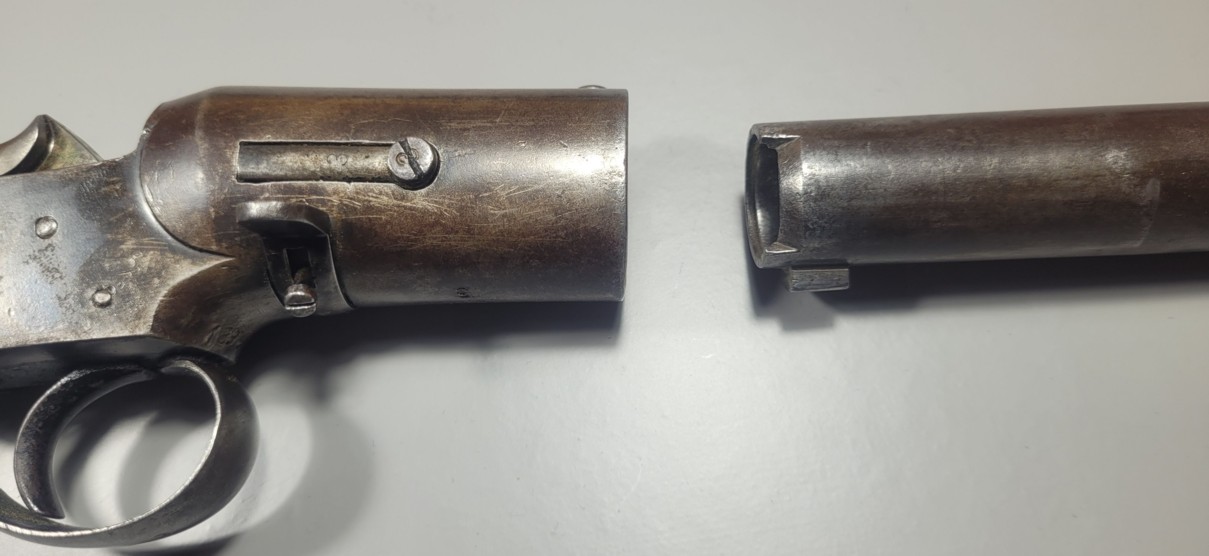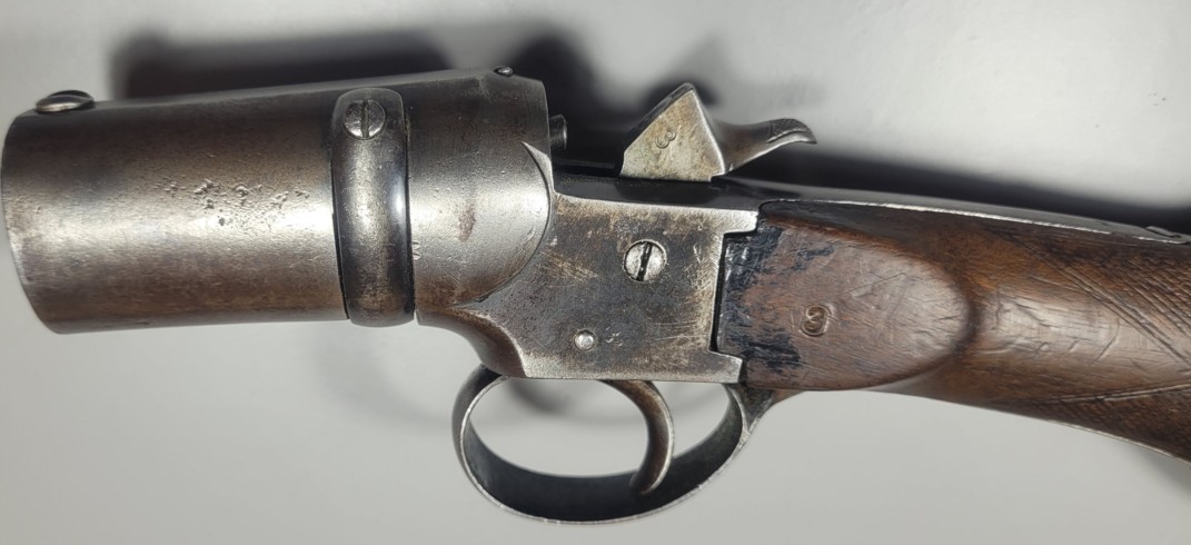 rotation. The barrel is released after pressing with the right thumb on the nose