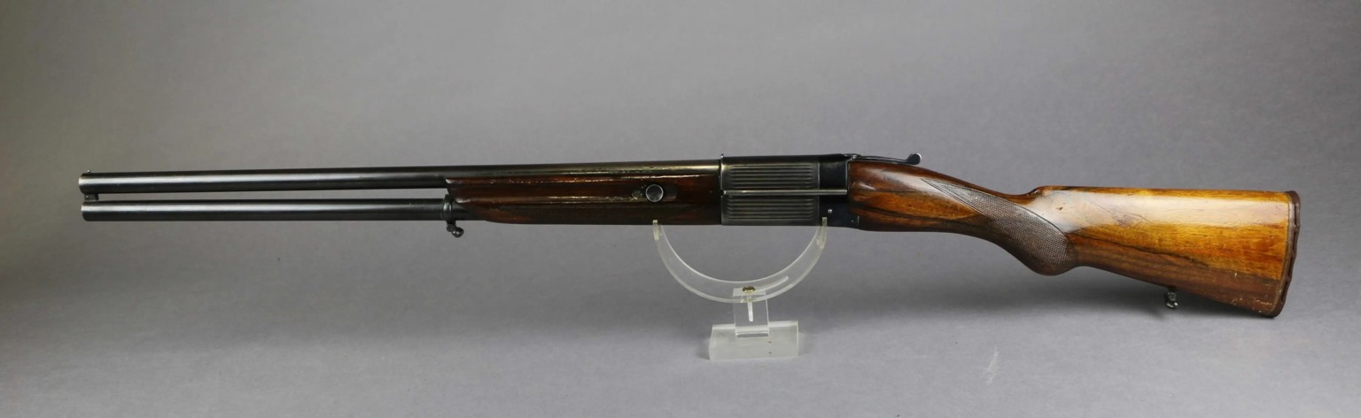 PIEPER Actionless shotgun, 12/65 cal, with over-and-under barrels.