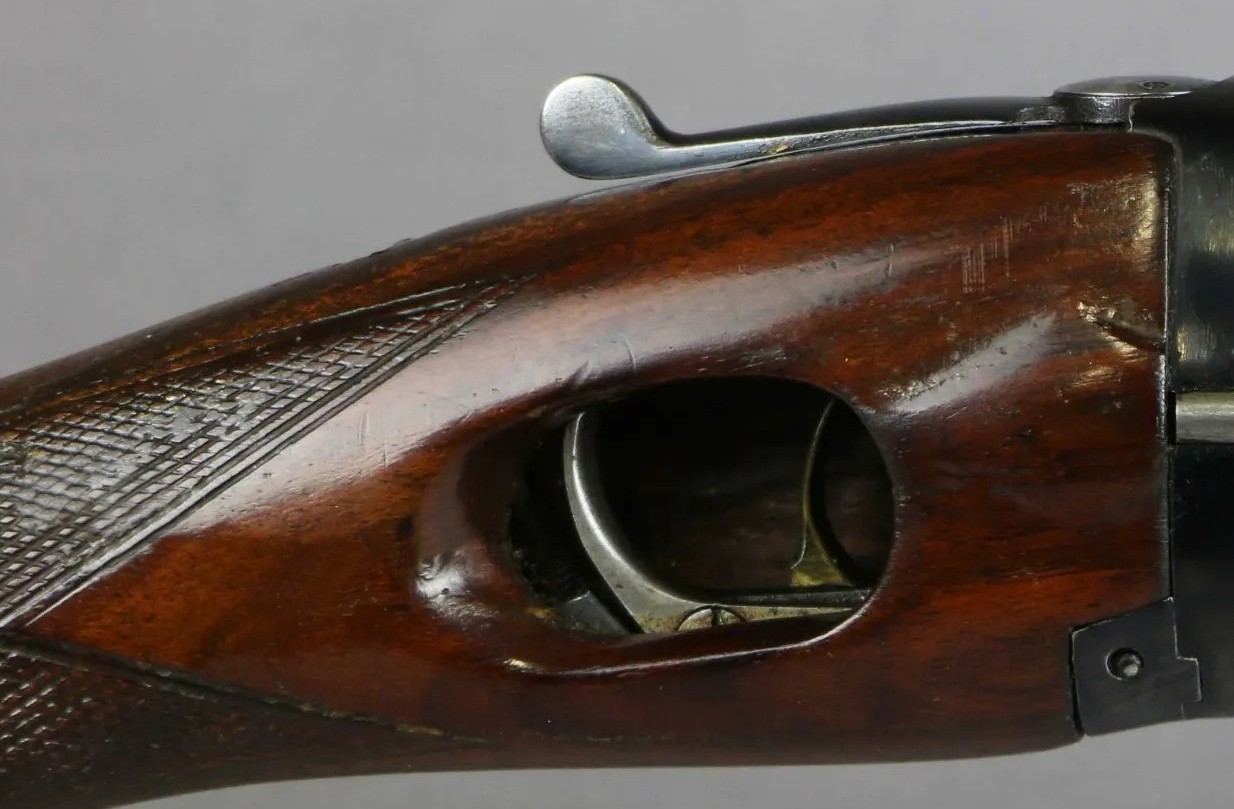 This rifle is very curious, the triggers are inside the stock!!