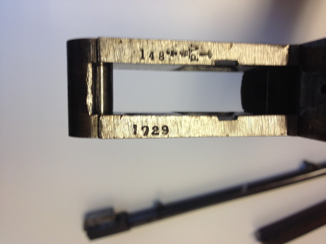 lever, bouton sûreté dans le pontet, gravure sommaire, marqué