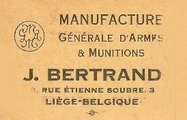 One of the private Belgian companies which manufactured guns of the most beautiful aspect. Bertrand manufactured automatic guns, but the Liege occupation by the Germans, in 1914, forced the factory to close its doors definitively.