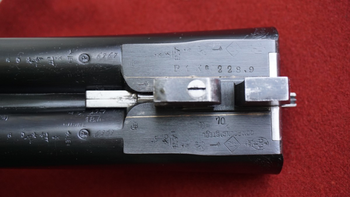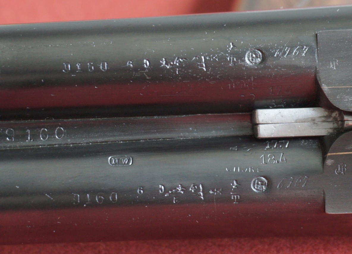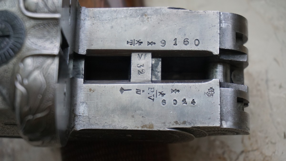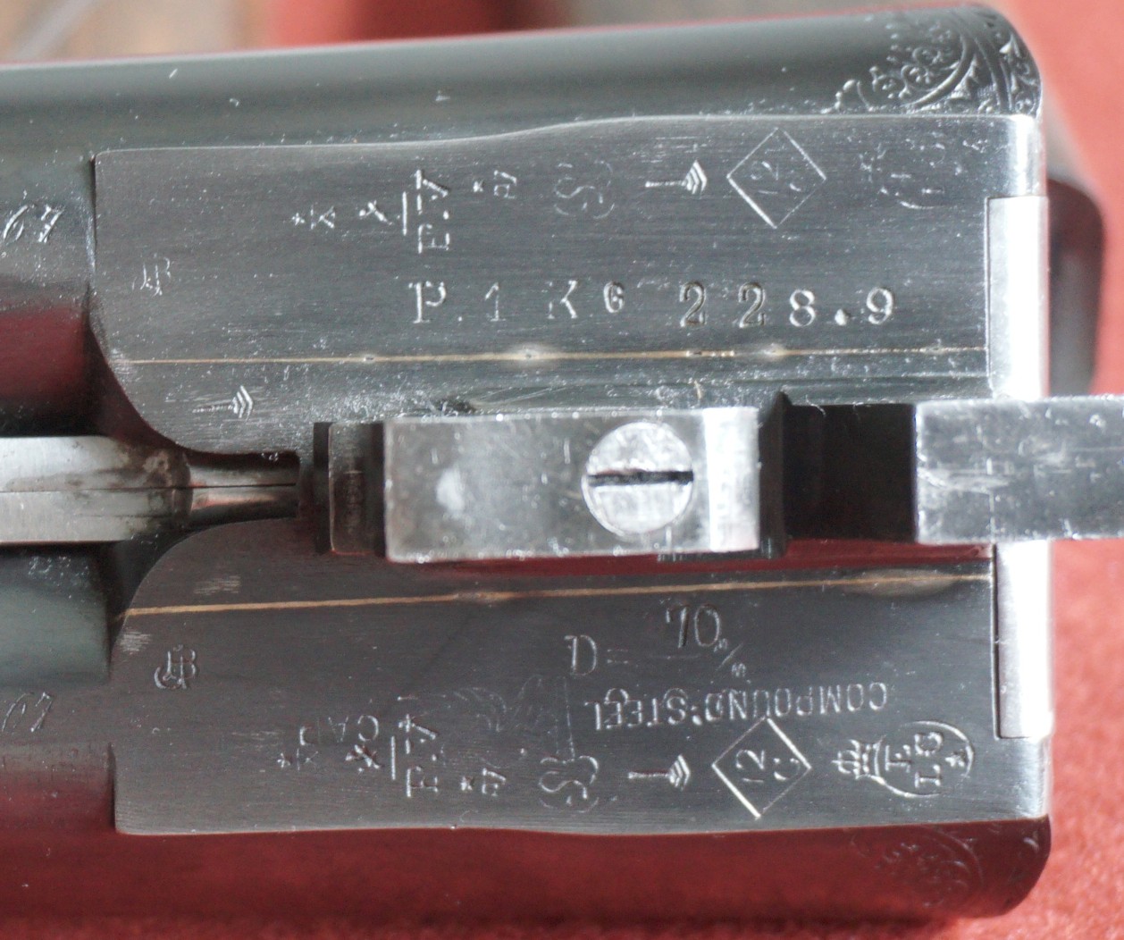 Two marks (interlaced JB) struck the weapon belong to the General Manufactory of firearms Joseph BERTRAND street of Bassenge, 39 in LIEGE then since 1924 street Etienne Soubre, 3 in Liege.