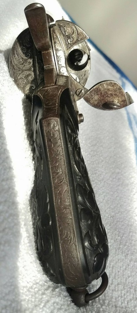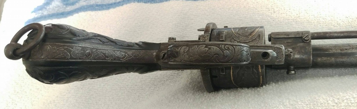 Here is a Bayet pinfire revolver in caliber 9 mm, 4-groove rifling, right hand twist.