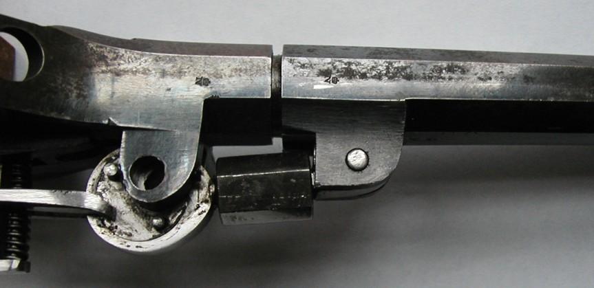 The revolver as the rifle carry the punches of the bench of test of Liege, namely spangled ELG in an oval struck the cylinder, punch of acceptance used of the 08.09.1846 to the 11.07.1893 and one N crowned struck the barrel, countermarks of the controller used of the 30.12.1853 to the 26.01.1877.