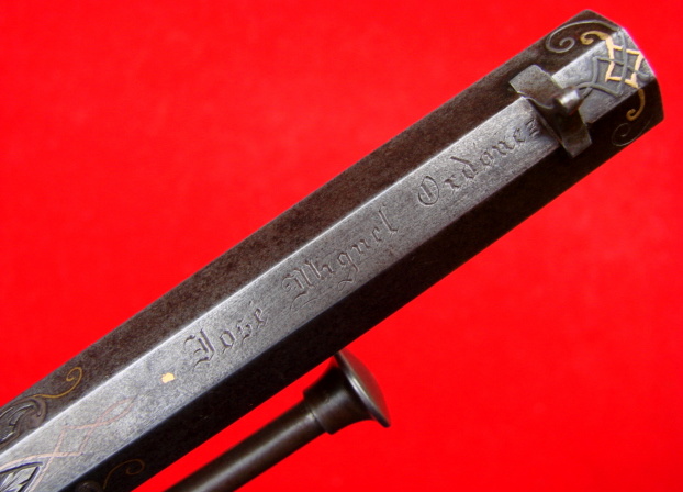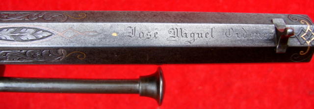 On the higher side of the barrel the name “Jose Miguel Ordonez” is most probably the name of the first owner.