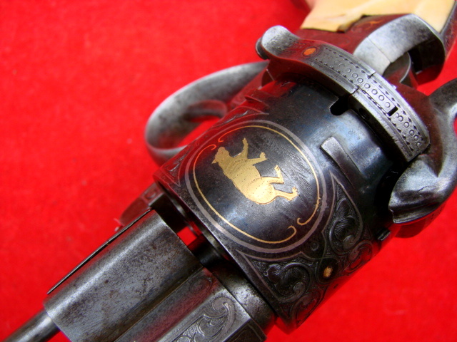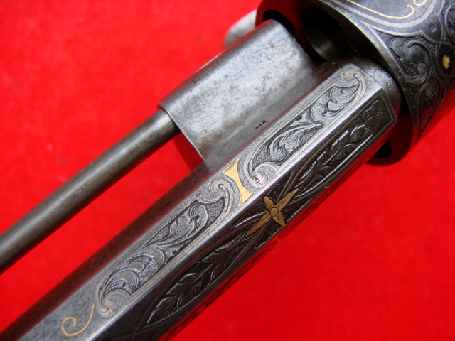 The barrel is octagonal with front sight in grain of dovetail barley assembled and slit in the peak of the hammer out of guide of bead.