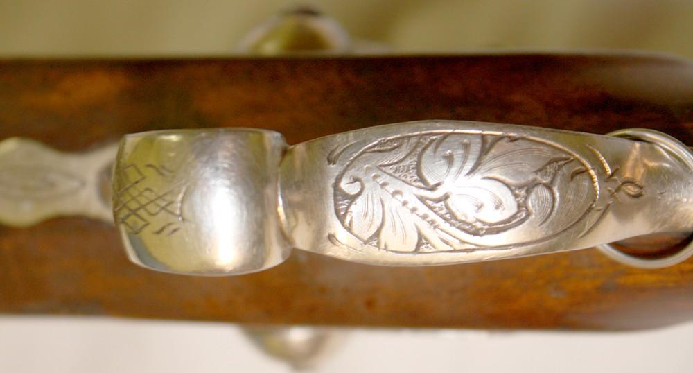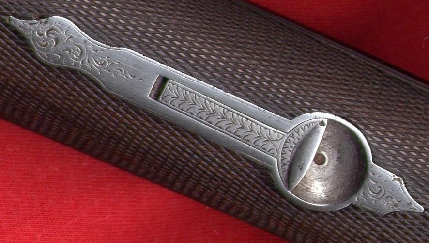 are external. The trigger guard is with volutes. The metal parts are engraved of