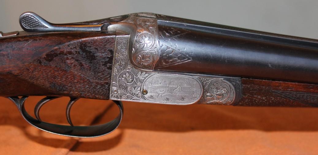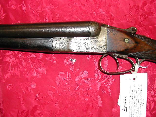 type slide safety is attached. The barrels are smooth 12-gauge and juxtaposed.