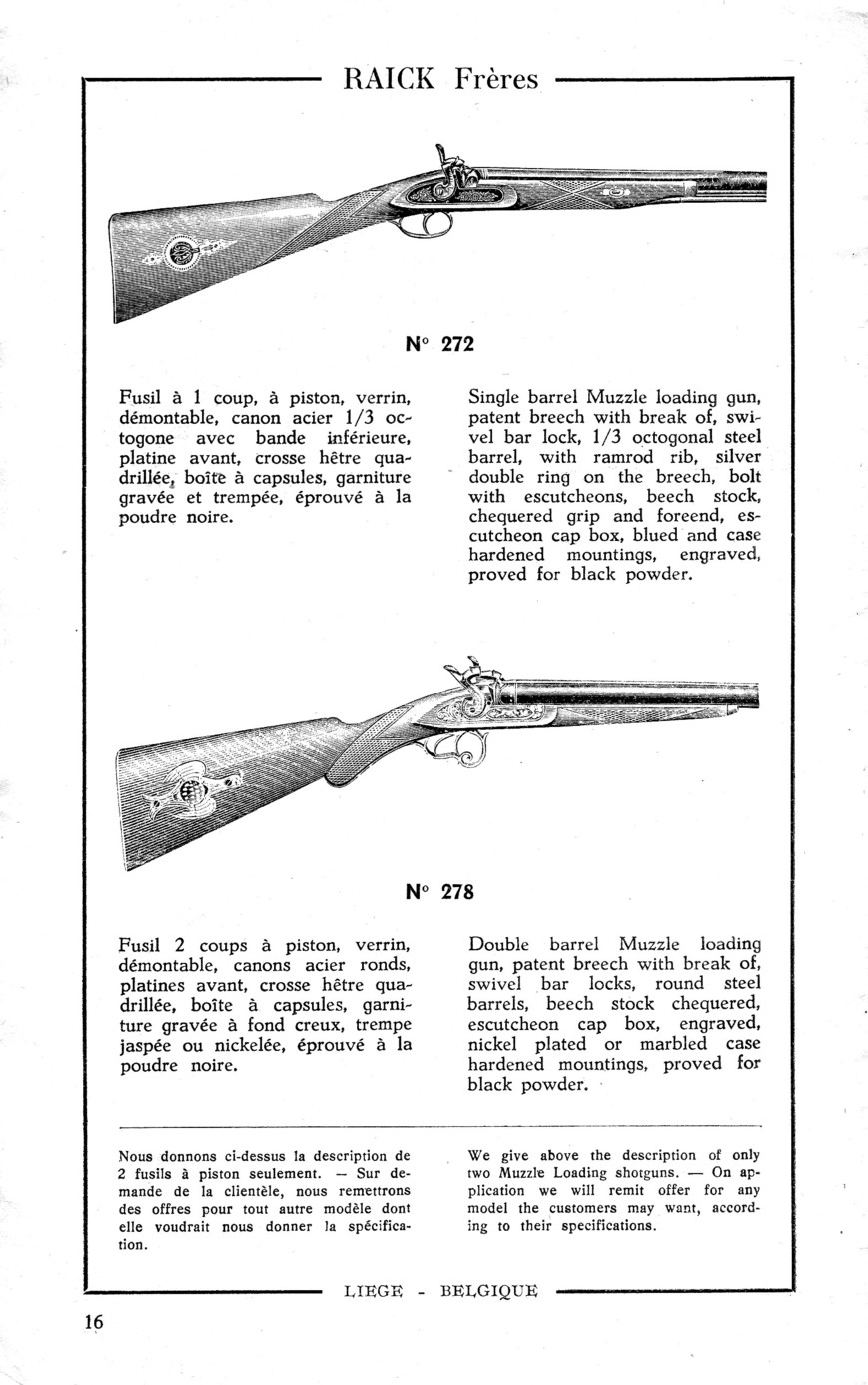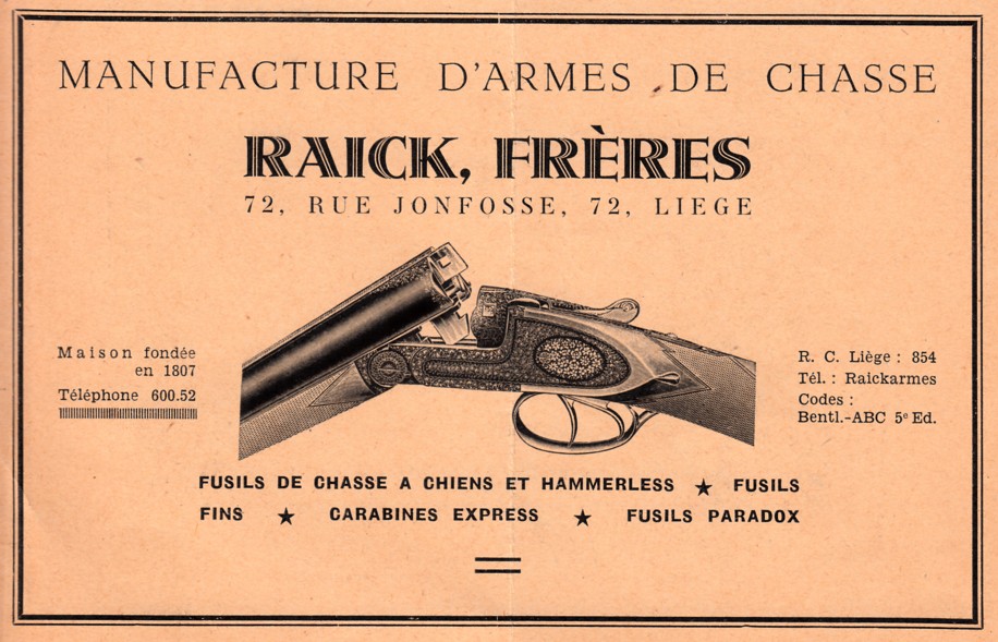 Raick Frères, Liege erw 1895/1922 "Manufacturer" Succeeds Felix Raick. Branch In London.