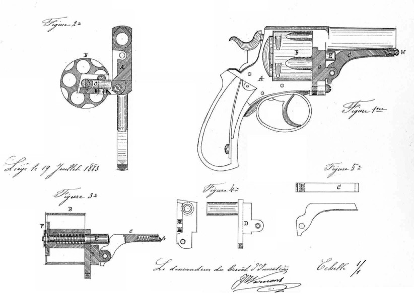 The weapon in question corresponds well to the Belgian patent n° 43736 of 1877 of Léonard Warnant-Fransquet.