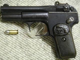 The Model 1900 was manufactured from 1900 to 1912, it was the first pistol ever to use the 7.65mm cartridge (known in the U.S. as .32 ACP), which had been designed for it by Browning. The Model 1900 was adopted by the Belgian Army in March 1900, and later adopted by many other European military and police forces as well as being a successful commercial product. About 725,000 were made 1899-1910.