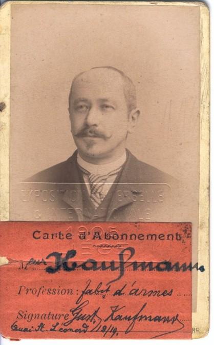 En 1889, il reprend l'activité de SCHAEFFER & KAUFMANN sous la dénomination KAUFMANN Gustave, il est alors inscrit au banc d'épreuves de 1889 à 1919.