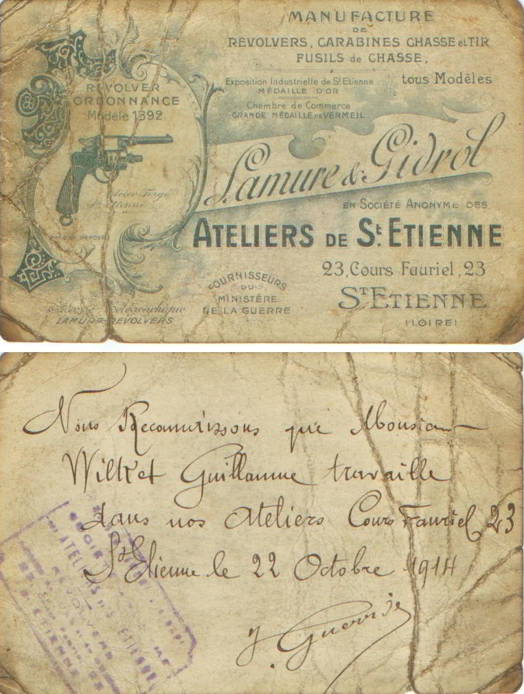 BOUQUETTE Arnold, Gérard, Dieudonné, armurier liégeois, né à Liège en 1877, époux de BIHIET Marie Julia Gabrielle, née à Neufchâteau en 1881, domiciliés à Liège, Impasse Nihart, 15.