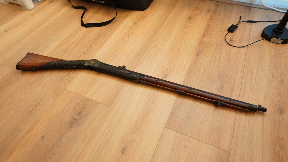 Voici ce qui fut un beau fusil Comblain civil découlant du modèle 1882 de la Garde civique belge, mais il a connu des jours meilleurs et a (surtout) perdu son mécanisme de chargement/fermeture et de mise à feu.
