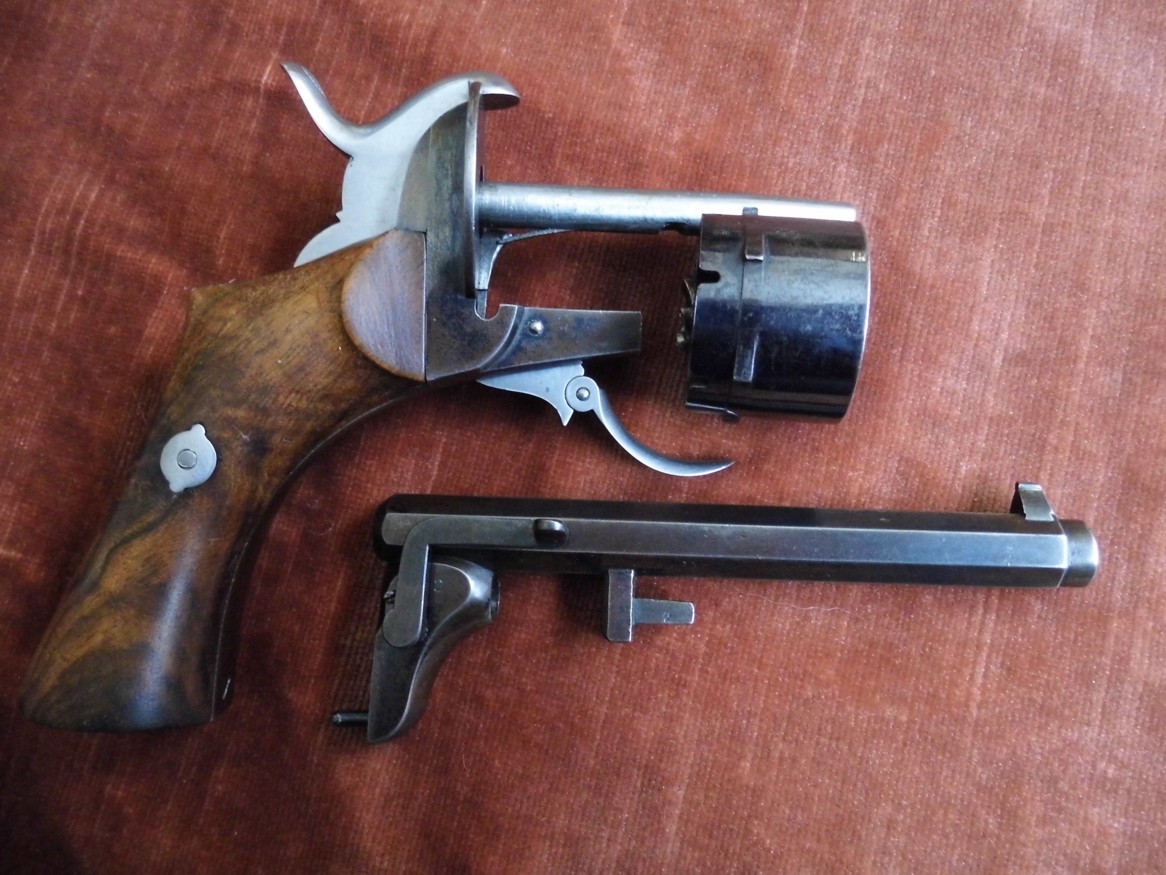 Revolver H. Comblain avec le système de baguette d'éjection couplé à la portière de chargement (suivant brevet du 17 novembre 1859. J'ai l'impression qu'ils ne sont pas très courants!