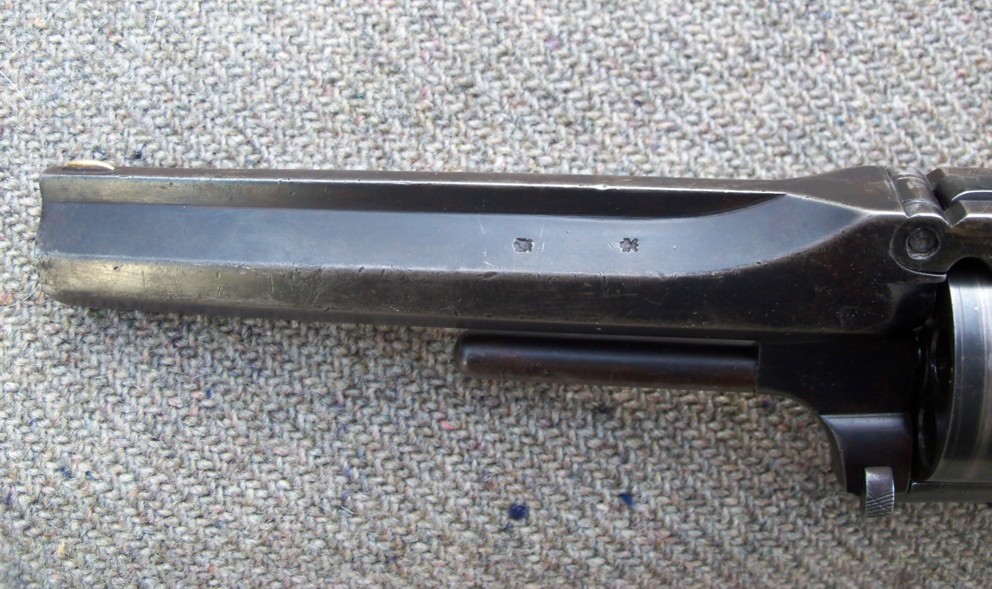 L’exemplaire examiné ici est évidemment destiné au marché britannique, avec ses poinçons d’épreuve de Birmingham. Cependant rien n’indique de façon certaine qu’il fut produit en Angleterre. Par exemple, un certain Meyers (belge, anglais ?) est réputé pour ses copies de ce modèle S&W N°2.
